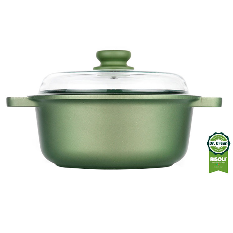 Ассортимент Dr.Green является самым экологически чистым из всех когда-либо созданных. Сковороды, кастрюли и сотейники идеально подходят для приготовления здоровых блюд путем запекания, приготовления на пару или тушения. Все изделия серии имеют тройной антипригарный слой, изготовленный из инновационной инертной, неорганической системы Greenstone на водной основе с двойной износостойкостью.